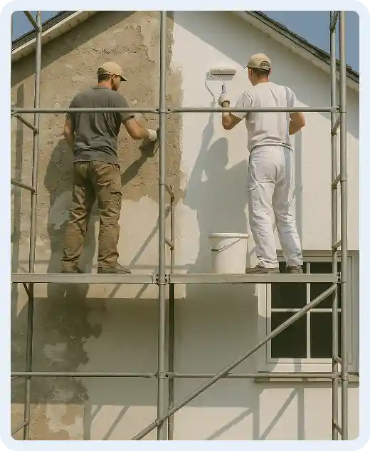 Nos peintres appliquent des produits résistants aux UV, à la pluie et aux variations de température. Les teintes sont choisies avec soin pour valoriser l’esthétique du bâtiment. Grâce à un savoir-faire éprouvé, nous offrons une finition homogène, respirante et élégante, adaptée à chaque type de façade.